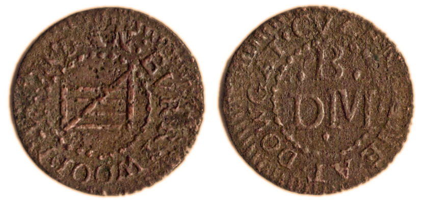 Obverse: .DAN . BURRY WOODMVNGR , around twisted wire inner circle, depiction of four barred gate within.