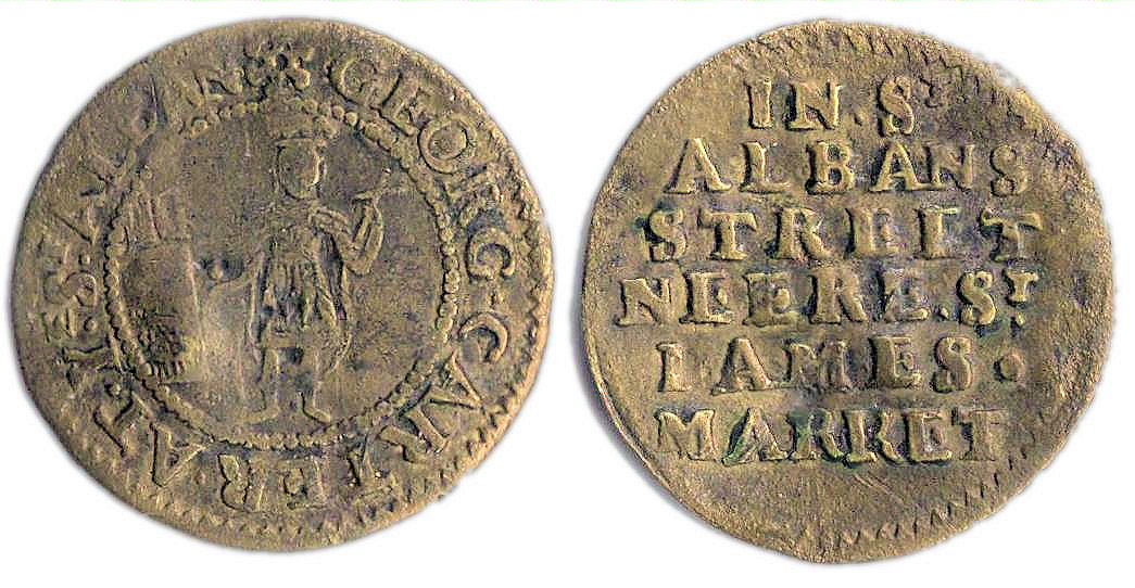 A half penny token issued in the name of George Carter in St. Alban‘s Street, Westminster