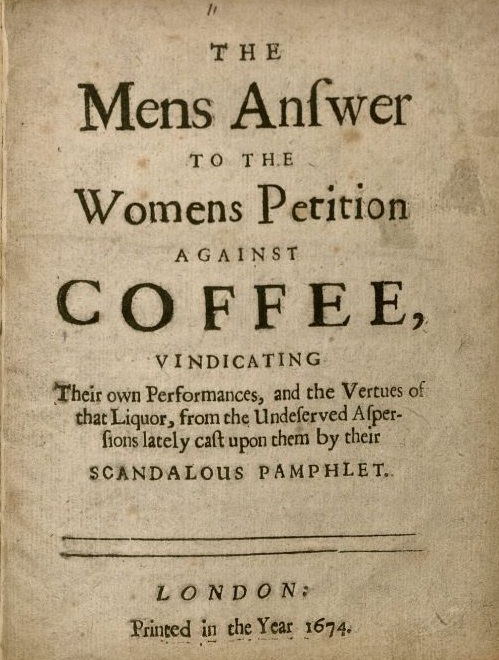 This was answered almost immediately by the male supporters in a reply pamphlet entitled “The Men’s Answer to the Women’s Petition Against Coffee”.