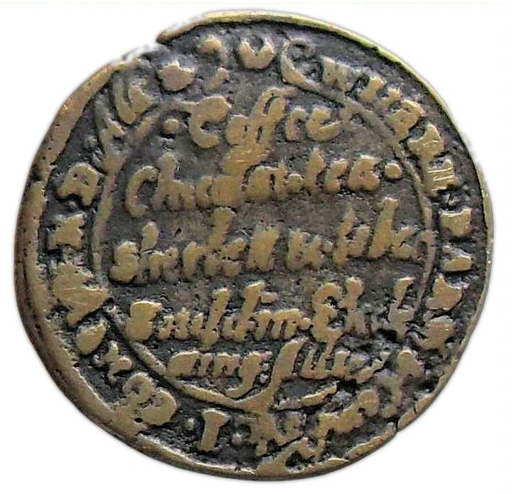 Reverse: Legend in five lines surrounded by a radial arrangement comprising a sexfoil and ten cinquefoils HOWARD / COFFE . HOV / SE . IN . NEW / STREET / 1671