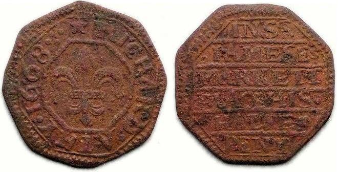 The first clear record of Humphrey Vaughan, the token issuer, appears in 1646 in the parish registers of St. Botolph’s Aldersgate in the city of London.